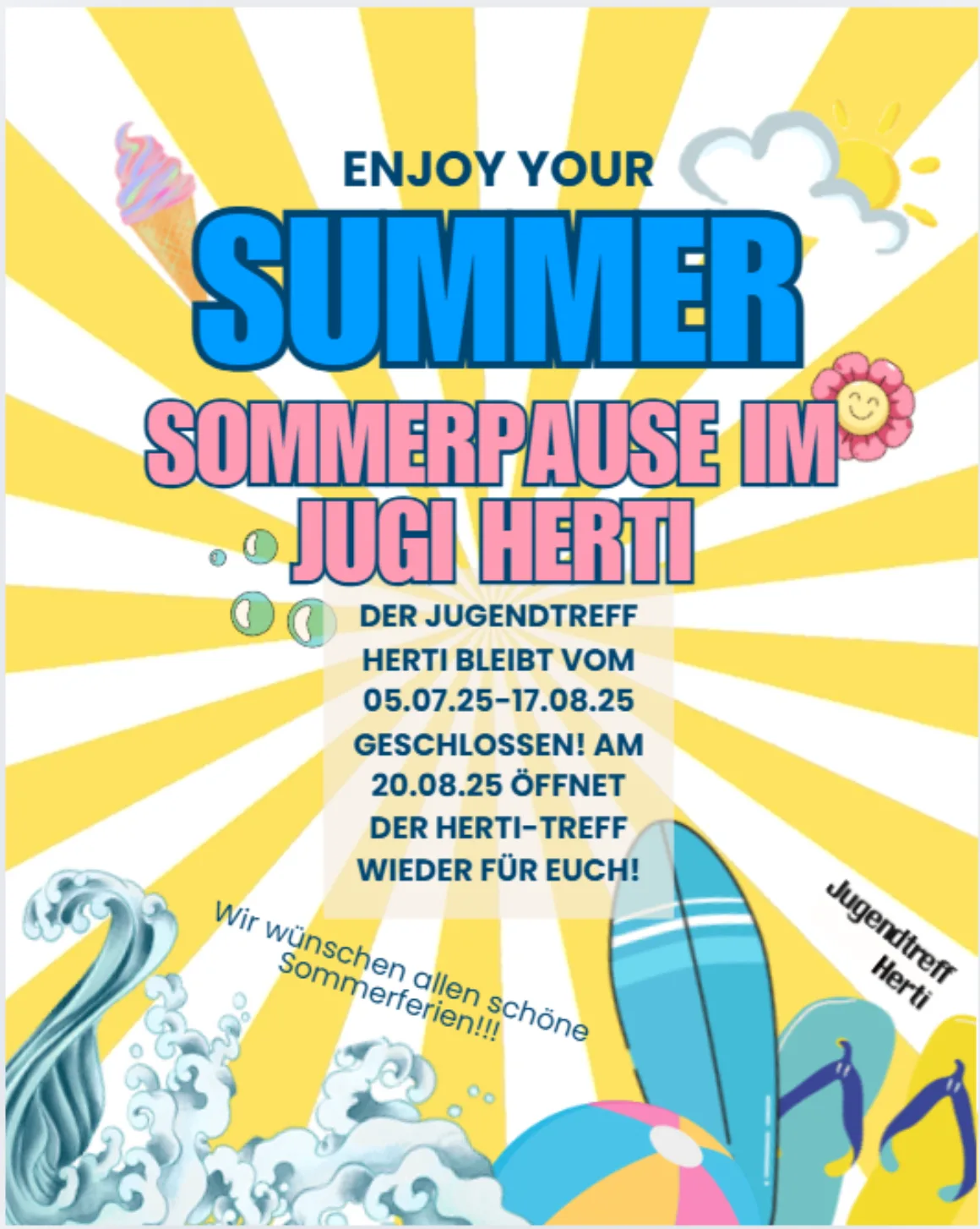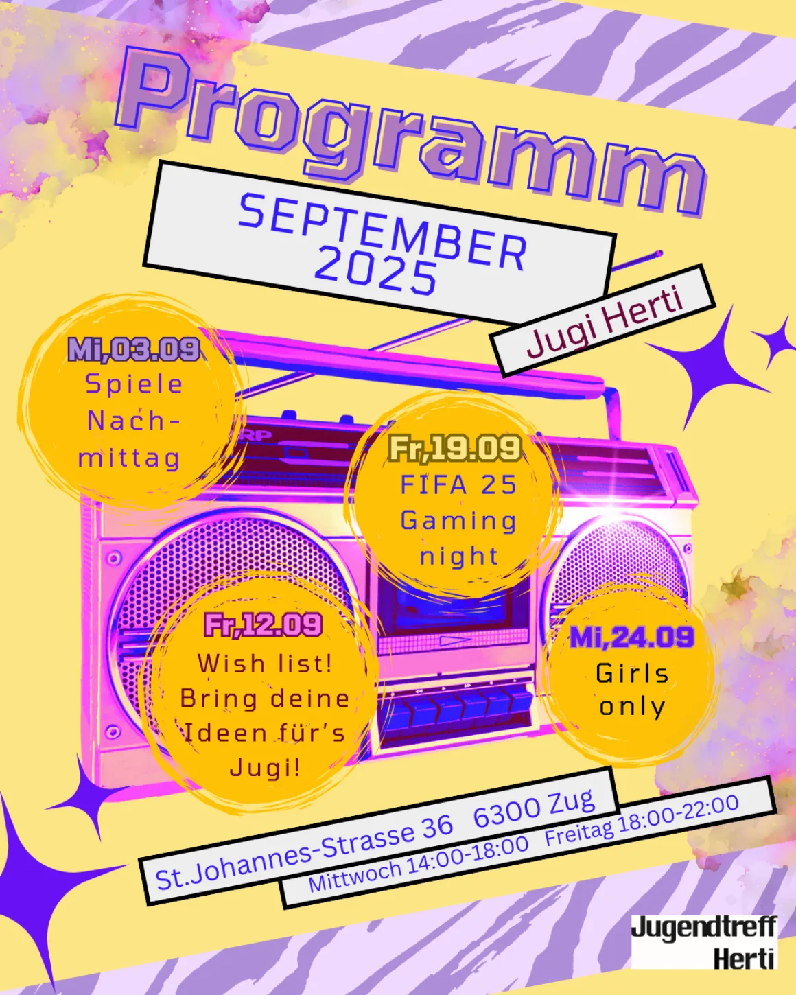 Der Jugendtreff Herti wird vom Verein Zuger Jugendtreffpunkte «ZJT» betrieben. Er ist offen für Jugendliche der 1. bis 3. Oberstufe aus Zug, insbesondere Zug West. Finanziert wird der Jugendtreff Herti von der Stadt Zug, der katholischen Kirchgemeinde Zug und der evangelisch-reformierten Kirchgemeinde Zug.